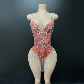 أزياء هالوين جديدة-ملابس داخلية نسائية مثيرة برقبة شرابة كريستال متألقة لعرض الرقص الشرقي