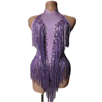 Novance Summer 2025 Women Clothes Sexy Sparkly Pink Tassel Catsuits Women Spandex Bodysuit Sexy Nightclub Stage Costume Clothing