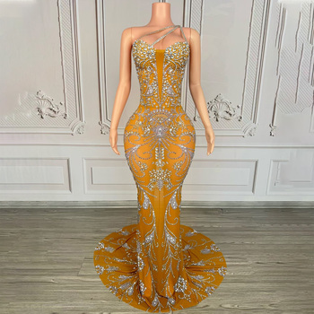 Novance Y5081 Manufacturing Vendors Sparkly Rhinestones Golden Elegant Prom Dresses for Women Matric Farewell Dresses Evening