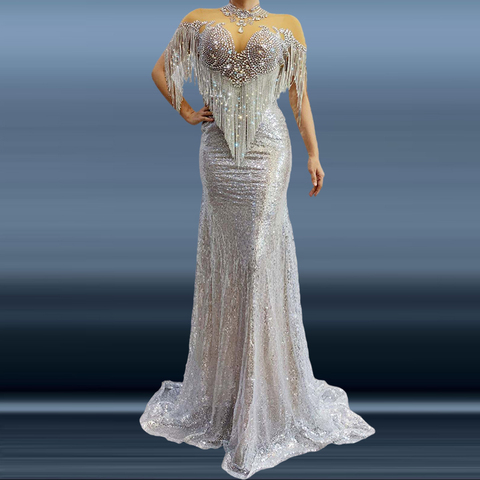 Twotwinstance — robe sirène à franges diamant brillant, pour femmes, vêtements formels de soirée, de fête, grande taille, Y1739
