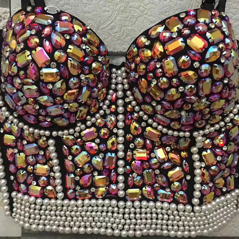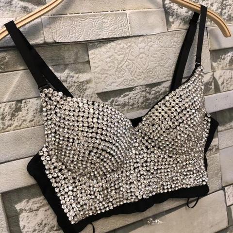 เสื้อแขนกุดกากเพชรผู้หญิง,ชุดชั้นในบิกินี่รัดตัวเซ็กซี่แวววาวมีสไตล์ลูกปัดหรูหรา