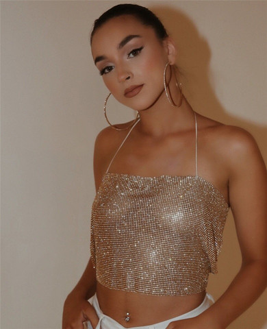 Novance เสื้อครอปประดับลูกปัด YX1154สำหรับผู้หญิง2021เสื้อนอกคามิโซลเสื้อสตรีประดับเพชรสดใสชุดใส่กลางคืนสุดเซ็กซี่ของผู้หญิงสวย