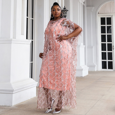 Novance ชุดเดรส P0075สองชั้นยาวถึงพื้นสำหรับผู้หญิงขนาดใหญ่สไตล์แอฟริกันชุดเดรสออกงานประดับด้วยเลื่อมสำหรับผู้หญิงขนาดใหญ่พิเศษ