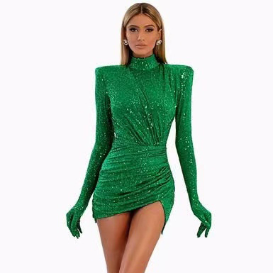 NOVANCE 2023 yeni ürün parlak kristaller Sequins seksi tüp üst işık yeşil elbiseler abiye zarif gece kulübü bar için